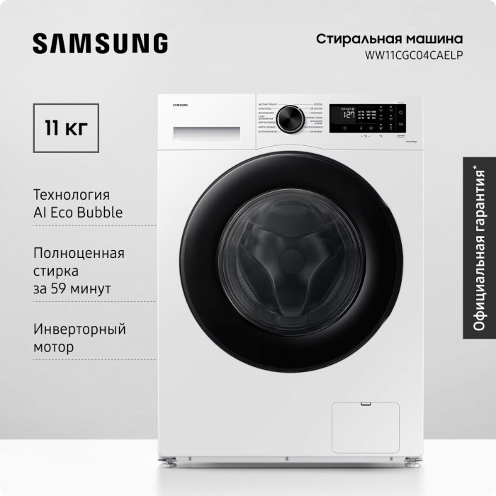 Стиральная машина Samsung WW11CGC04CAELP подарит вещам бережный уход и сэкономит энергию в вашем доме.