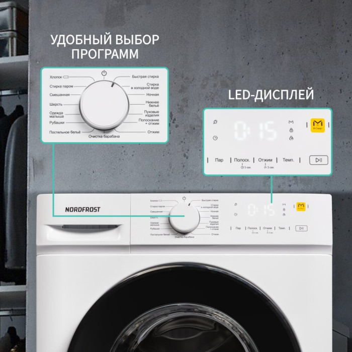 автовзвешивание, выбор скорости отжима, выбор температуры стирки, интеллектуальное управление стиркой, контроль баланса, отложенный старт, очистка барабана, сигнал окончания стирки