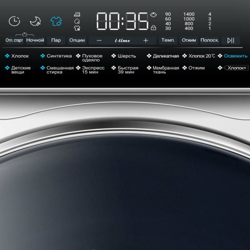 Основные сведения: Габариты: 98,5х70,1х48,6 см Максимальная загрузка: 10 кг Скорость отжима: 1400 об/мин Класс стирки: A Класс отжима: B Класс энергопотребления: A+++ Программы: Освежить Быстрая стирка 39 мин Синтетика Смешанные ткани Деликатная стирка Шерсть Детские вещи Экспресс-стирка 15 мин Отжим Хлопок Хлопок+ Хлопок 20С Одеяла Мембранная ткань Дополнительные функции: Стирка с паром Отложенный старт Автовзвешивание Таймер Диапазон регулировки скорости отжима: 400/800/1000/1400 Регулируемый термостат Функция памяти Дополнительное полоскание Управление и индикация: Дисплей LED Системы безопасности: Автоматическое закрытие дверцы Защита от перегрева двигателя Отключение нагрева без воды Дополнительная информация: Инверторный Двигатель Манжета люка AВT технология (защита от микробов) Лоток с АВТ покрытием Диаметр дверцы (см): 63.1 Передние/задние регулируемые ножки Цвет дверцы: Темно-синий Объем барабана (л): 67 Уровень шума цикла стирки дБ (А): 55 Уровень шума цикла отжима дБ (А): 74