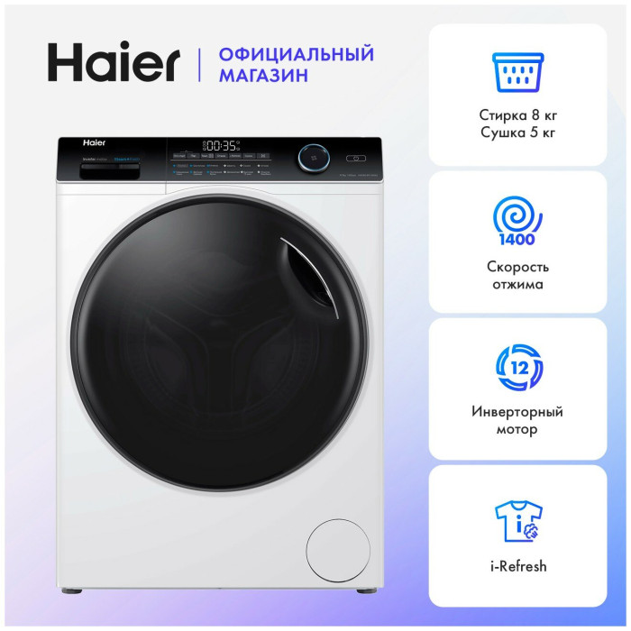 Общие данные: Габариты: 85х59.5х45 см Максимальная загрузка при стирке: 8 кг Максимальная загрузка при сушке: 5 кг Скорость отжима: 1400 об/мин Класс стирки: A Класс отжима: B Программы: 12 Сушка Функция освежения i-Refresh Синтетика Смешанные ткани Деликатная стирка Шерсть Детские вещи Экспресс-стирка 15 мин Отжим Дополнительное полоскание Хлопок Гигиена Детская одежда Постельное белье Очистка барабана Стирка с паром Дополнительные функции: Автовзвешивание Управление и индикация: Дисплей LED Отложенный старт до 24 ч Температура (°C): 20/30/40/60/90 Системы безопасности: Автоматическое закрытие дверцы Дополнительная информация: Инверторный Двигатель Манжета люка AВT технология (защита от микробов) Лоток с АВТ покрытием Диаметр дверцы (см): 52,5 Передние/задние регулируемые ножки Уровень шума цикла стирки дБ (А): 53 Уровень шума цикла отжима дБ (А): 74 Уровень шума цикла сушки дБ (А): 55 Регулируемый термостат Объем барабана (л): 51,5