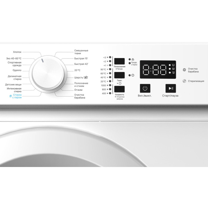 выбор скорости отжима, выбор температуры стирки, отложенный старт, очистка барабана