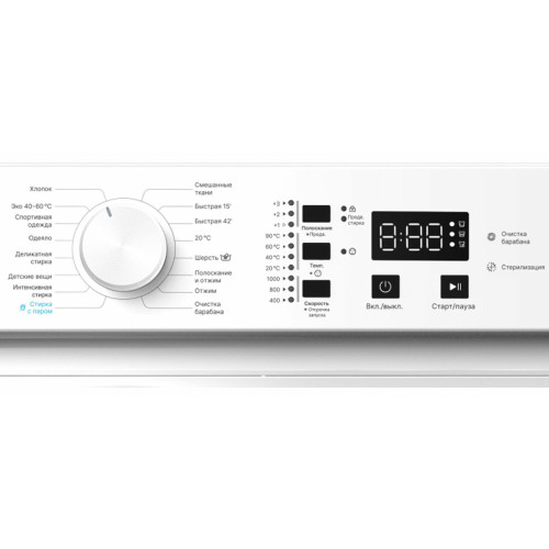 быстрая стирка, отжим, полоскание, стирка деликатных тканей, стирка детских вещей, стирка одеяла, стирка паром, стирка смешанных тканей, стирка спортивной одежды, стирка хлопка, стирка шерсти