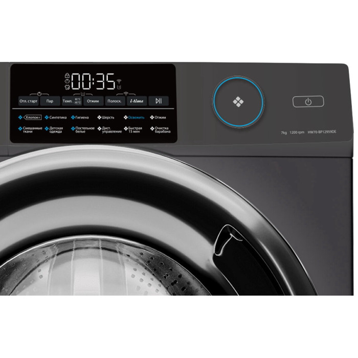 Особенности: Поддержка мобильного приложения EVO Управляйте вашей стиральной машиной и отслеживайте статус стирки удаленно. С помощью EVO расширьте выбор программ стирки: в приложении доступны эксклюзивные программы, которых нет на контрольной панели. Инверторный мотор с гарантией 12 лет Современный бесщёточный мотор: тихий и долговечный, благодаря уменьшению точек трения. Инверторный контроль мощности снижает расход электроэнергии. Гарантия - 12 лет. Шланг с Aquastop Сохранит ваше спокойствие во время стирки. Больше нет необходимости находиться дома, пока идет стирка. Электромагнитный клапан блокирует подачу воды, если шланг негерметичен. Барабан Pillow Внутренняя поверхность стирального барабана имеет форму подушечек. Ткань легко скользит по ним - вещи стираются очень бережно, но эффективно. Даже самые деликатные. Smart Dual Spray Манжета и внутренняя поверхность стекла дверцы люка всегда остаются чистыми, благодаря автоматическому промыванию направленными струями воды. Программа освежения паром Любая одежда, даже та, которую нельзя стирать в стиральной машине, будет приведена в порядок: пар удалит запахи, вернет прежнюю форму и разгладит складки. Основные сведения: Габариты: 85x59.5x45.4 см Максимальная загрузка: 7 кг Скорость отжима: 1200 об/мин Класс стирки: A Класс отжима: B Класс энергопотребления: A+++ Программы: Освежить Синтетика Смешанные ткани Шерсть Отжим Гигиена Детская одежда Хлопок+ Быстрая 15 мин Постельное белье Очистка барабана Дистанционное управление Дополнительные функции: Стирка с паром Отложенный старт: 0.5-24 ч Автовзвешивание Функция i-time Таймер Диапазон регулировки скорости отжима: 0-400-600-800-1000-1200 Температура (°C): Холодная-20-30-40-60-90 Регулируемый термостат: 0-20-30-40-60-90 Дозагрузка белья во время работы Функция памяти Дополнительное полоскание Предварительная стирка Управление и индикация: Управление: Сенсорное Дисплей LED Старт/Стоп/Пауза Безопасность: Блокировка от детей Автоматическое закрытие дверцы Аквастоп Защита от протечек: Шланг с Aquastop Дополнительная информация: Ширина х Высота х Глубина по крышке, см: 59.5 х 85 х 39.4 Ширина х Высота х Глубина в упаковке, см: 65 х 89.5 х 53.1 Глубина с учётом открытой дверцы, см: 93 Диаметр барабана, мм: 525 Уровень шума цикла стирки дБ (А): 54 Уровень шума цикла отжима дБ (А): 74 Объем барабана (л): 45.35 Продолжительность программы (60° Хлопок): 5 ч Материал барабана: Нержавеющая сталь Номинальное напряжение/Частота тока: 220~240 В / 50 Гц Потребляемая мощность/Максимальный ток потребления: 1950 Вт Энергопотребление (кВтч/г): 122 Потребление воды (Л/г): 8203 Инверторный двигатель Манжета люка: AВT технология (защита от микробов) Лоток с АВТ покрытием Входные отверстия для горячей/холодной воды: Нет/Да Передние/задние регулируемые ножки Тип барабана: Pillow