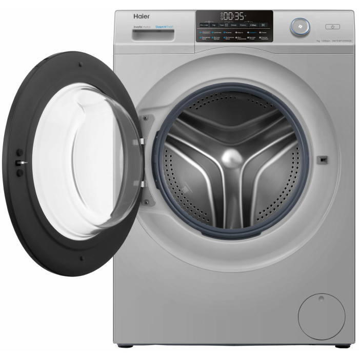 Особенности: Поддержка мобильного приложения EVO Управляйте вашей стиральной машиной и отслеживайте статус стирки удаленно. С помощью EVO расширьте выбор программ стирки: в приложении доступны эксклюзивные программы, которых нет на контрольной панели. Инверторный мотор с гарантией 12 лет Современный бесщёточный мотор: тихий и долговечный, благодаря уменьшению точек трения. Инверторный контроль мощности снижает расход электроэнергии. Гарантия - 12 лет. Шланг с Aquastop Сохранит ваше спокойствие во время стирки. Больше нет необходимости находиться дома, пока идет стирка. Электромагнитный клапан блокирует подачу воды, если шланг негерметичен. Барабан Pillow Внутренняя поверхность стирального барабана имеет форму подушечек. Ткань легко скользит по ним - вещи стираются очень бережно, но эффективно. Даже самые деликатные. Smart Dual Spray Манжета и внутренняя поверхность стекла дверцы люка всегда остаются чистыми, благодаря автоматическому промыванию направленными струями воды. Программа освежения паром Любая одежда, даже та, которую нельзя стирать в стиральной машине, будет приведена в порядок: пар удалит запахи, вернет прежнюю форму и разгладит складки. Основные сведения: Габариты: 85x59.5x45.4 см Максимальная загрузка: 7 кг Скорость отжима: 1200 об/мин Класс стирки: A Класс отжима: B Класс энергопотребления: A+++ Программы: Освежить Синтетика Смешанные ткани Шерсть Детские вещи Отжим Хлопок Гигиена Быстрая 15 мин Постельное белье Очистка барабана Дополнительные функции: Стирка с паром Отложенный старт: 0.5-24 ч Автовзвешивание Функция i-time Таймер Диапазон регулировки скорости отжима: 0-400-600-800-1000-1200 Температура (°C): Холодная-20-30-40-60-90 Регулируемый термостат: 0-20-30-40-60-90 Дозагрузка белья во время работы Функция памяти Дополнительное полоскание Предварительная стирка Управление и индикация: Управление: Сенсорное Дисплей LED Старт/Стоп/Пауза Безопасность: Блокировка от детей Аквастоп Защита от протечек: Шланг с Aquastop Дополнительная информация: Ширина х Высота х Глубина по крышке, см: 59.5 х 85 х 39.4 Ширина х Высота х Глубина в упаковке, см: 65 х 89.5 х 53.1 Глубина с учётом открытой дверцы, см: 93 Диаметр барабана, мм: 525 Уровень шума цикла стирки дБ (А): 54 Уровень шума цикла отжима дБ (А): 74 Объем барабана (л): 45.35 Материал барабана: Нержавеющая сталь Номинальное напряжение/Частота тока: 220~240 В / 50 Гц Потребляемая мощность/Максимальный ток потребления: 1950 Вт Энергопотребление (кВтч/г): 122 Потребление воды (Л/г): 8203 Инверторный двигатель Манжета люка: AВT технология (защита от микробов) Лоток с АВТ покрытием Диаметр дверцы (см): 36 Входные отверстия для горячей/холодной воды: Нет/Да Передние/задние регулируемые ножки Тип барабана: Pillow