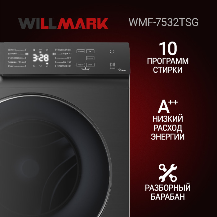 выбор скорости отжима, выбор температуры стирки, отложенный старт, очистка барабана
