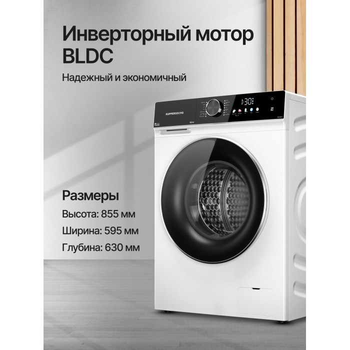 Длина сетевого шнура - 155 см, Самодиагностика, Контроль дисбаланса, Тип дисплея - TFT, Тип управления - сенсорное/механическое, Барабан 64 л, Диаметр люка 480 мм, Ширина х Высота х Глубина (по крышке) 59.5×85.5×55.5 см,