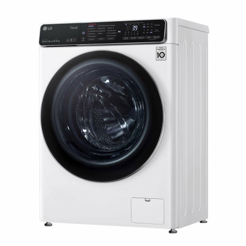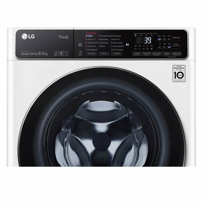энергопотребление 1.25 кВт/ч; функция пара Steam+; Wi-Fi; возможность управления через приложение LG ThinQ; автоперезапуск, индикатор времени до конца цикла, индикатор блокировки дверцы, индикатор ошибок/самодиагностика, индикатор пуск/пауза, индикатор загрузки, индикатор температуры, индикатор скорости отжима