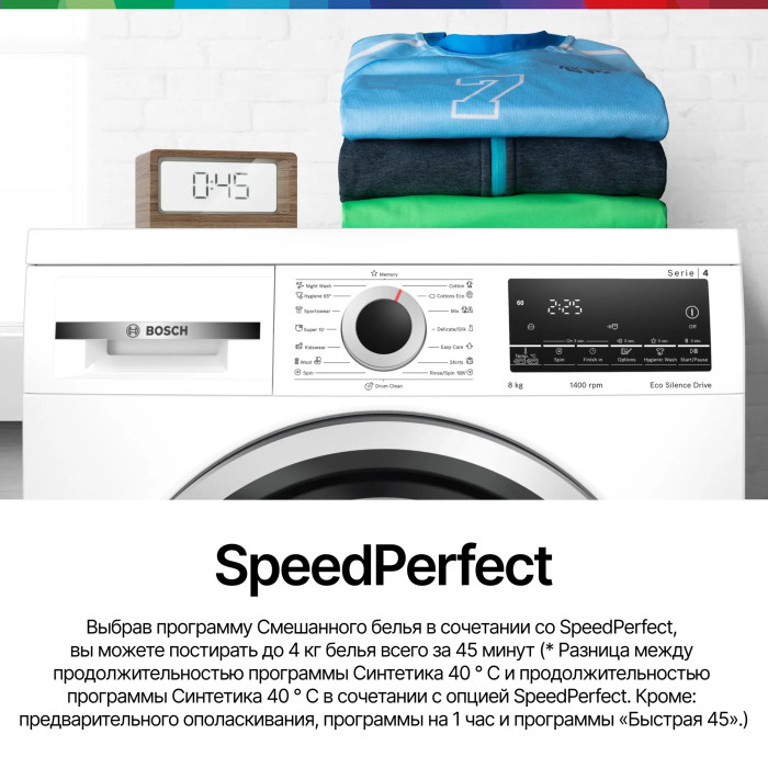 выбор скорости отжима, выбор температуры стирки, отложенный старт, очистка барабана, сигнал окончания стирки, установка времени завершения стирки