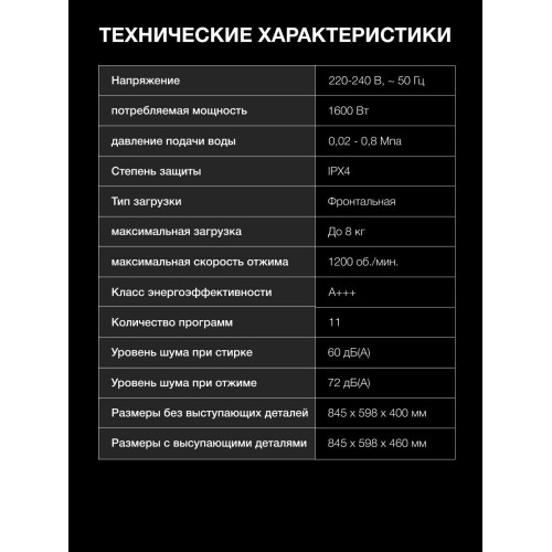 Количество программ стирки