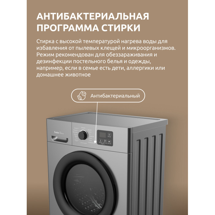 выбор скорости отжима, контроль баланса, отложенный старт, очистка барабана, сигнал окончания стирки