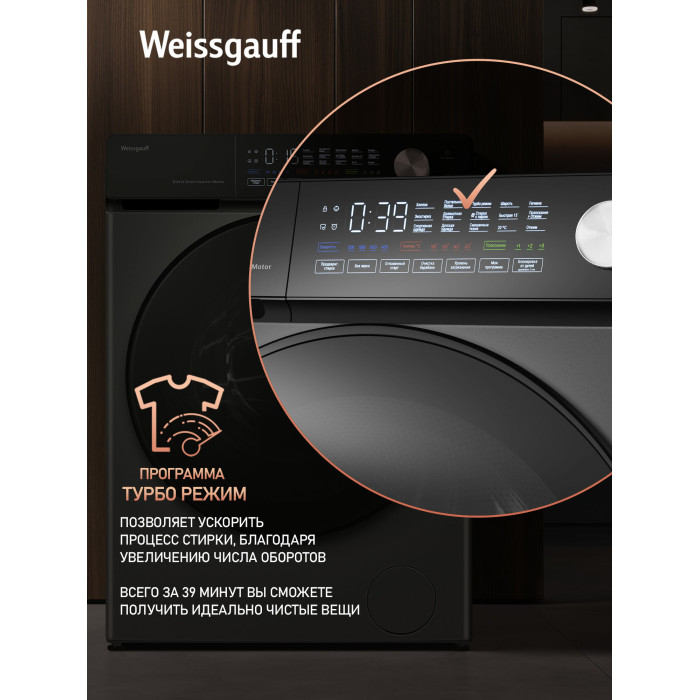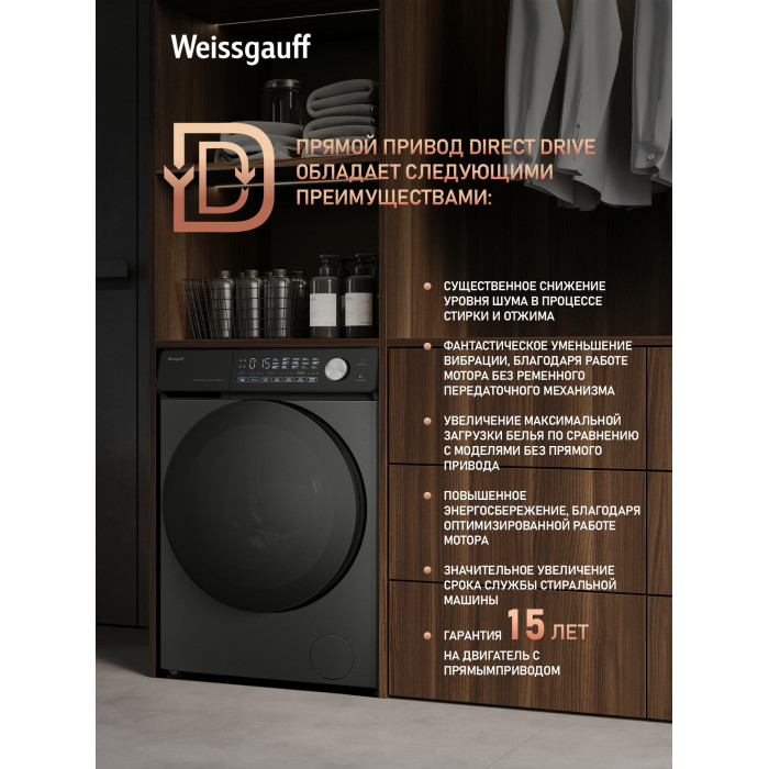 Стиральная машина Weissgauff WM 45126 Steam Direct Drive Deep Grey