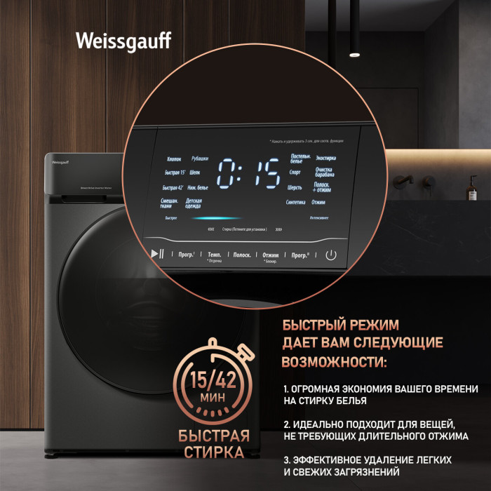 Стиральная машина Weissgauff WM 4927 Direct Drive Inverter Premium Deep Grey
