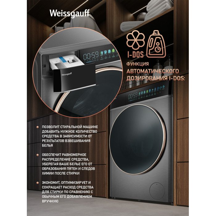 Стиральная машина Weissgauff WM 58411 Direct Drive Inverter Premium Steam Grey