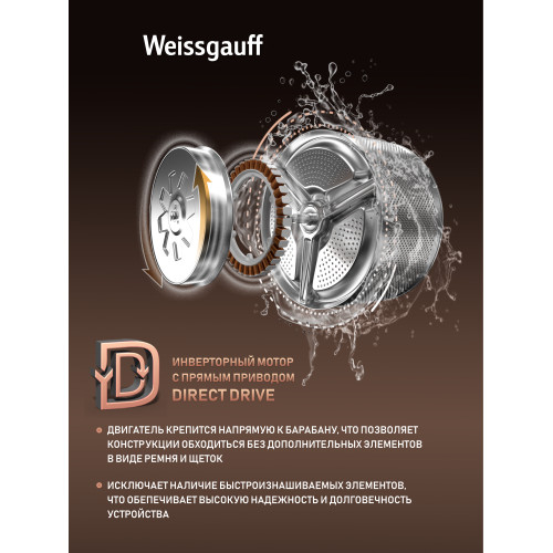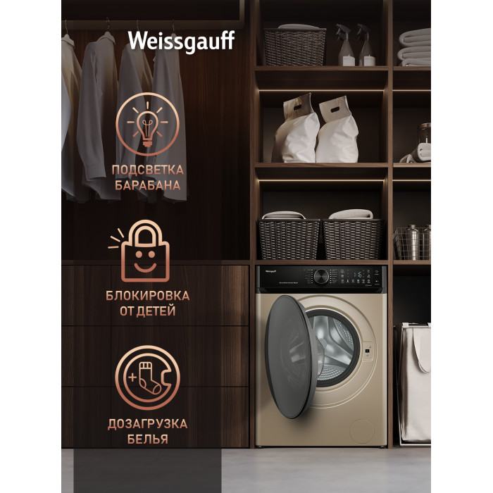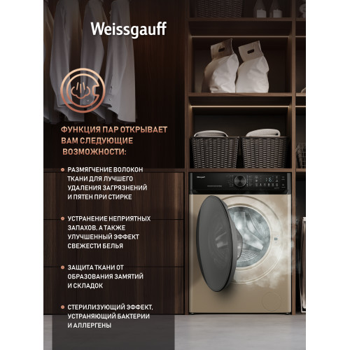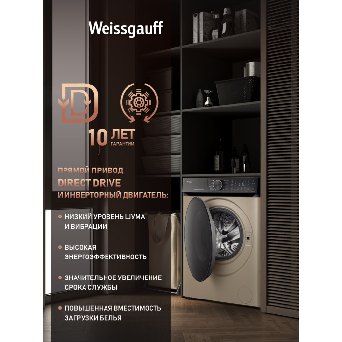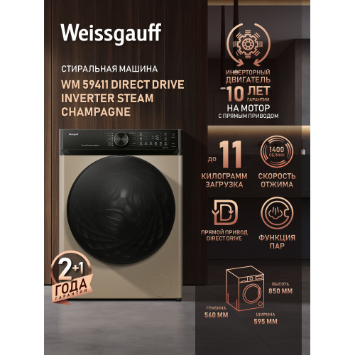 Стиральная машина Weissgauff WM 59411 Direct Drive Inverter Steam Champagne