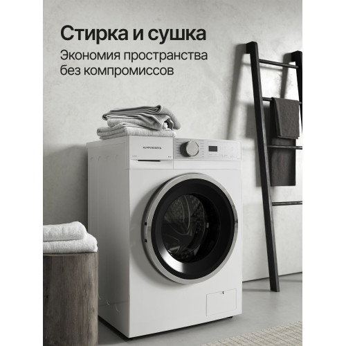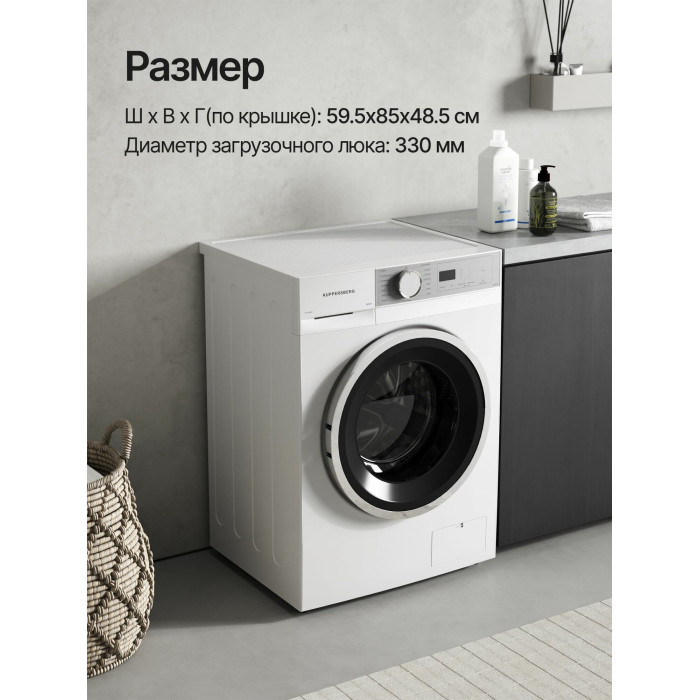 Длина сетевого шнура 150 см, Программы Eco, Быстрая стирка, Быстрая стирка 15 мин, Стирка+сушка, Одеяло, Хлопок, Хлопок 20 °C, Шерсть, Очистка барабана, Отжим, Синтетика, Смешанные ткани, Детские вещи, Сушка, PET HAIR REMOVAL, Ширина х Высота х Глубина (по крышке) 59.5х85х48.5 см