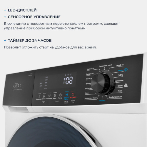 выбор скорости отжима, выбор температуры стирки, отложенный старт