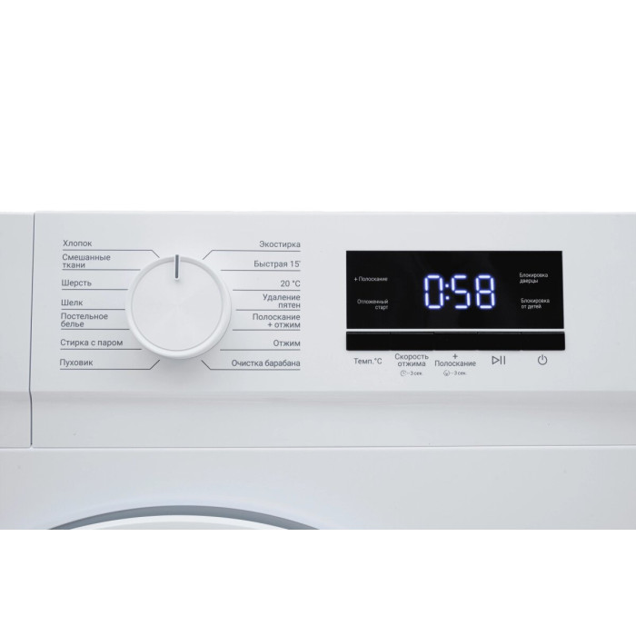 выбор скорости отжима, выбор температуры стирки, контроль баланса, контроль за уровнем пены, отложенный старт, сигнал окончания стирки