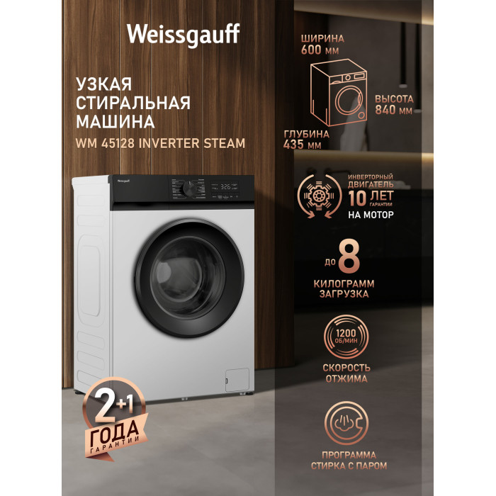 Стиральная машина Weissgauff WM 45128 Inverter Steam белый