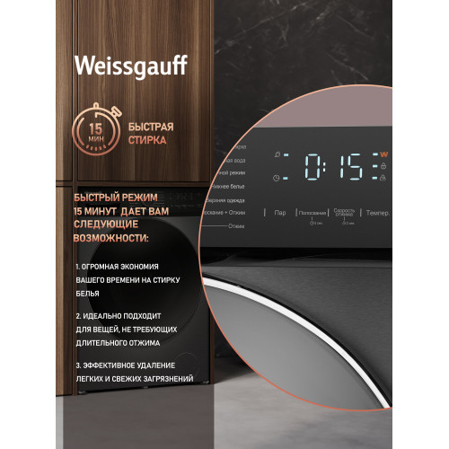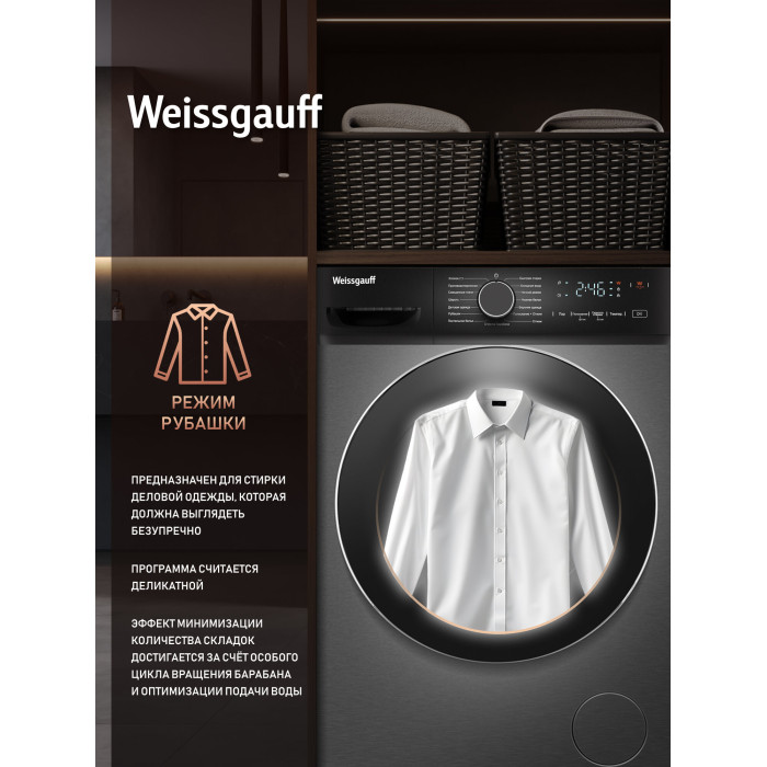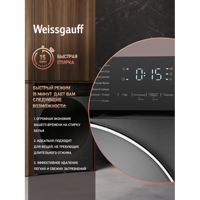 выбор скорости отжима, выбор температуры стирки, интеллектуальное управление стиркой, отложенный старт, очистка барабана, сигнал окончания стирки