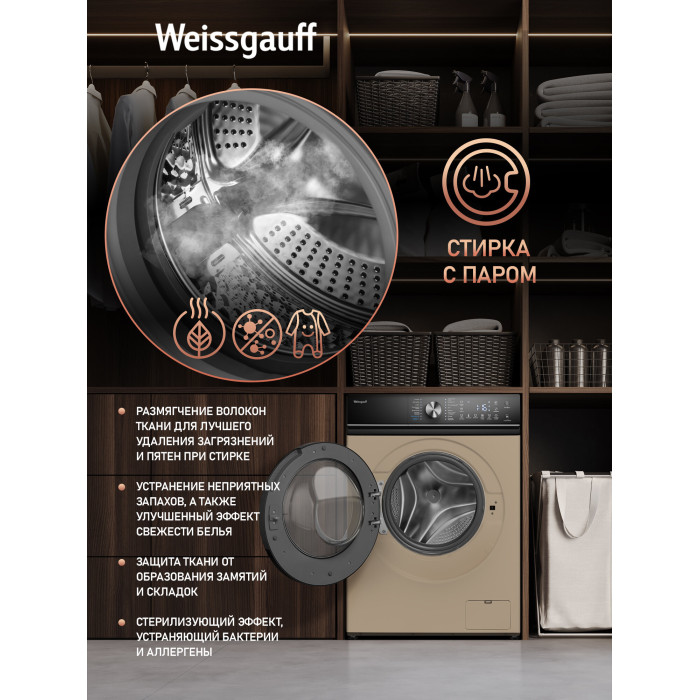 Стиральная машина Weissgauff WM 47148 DC Inverter Steam Champagne