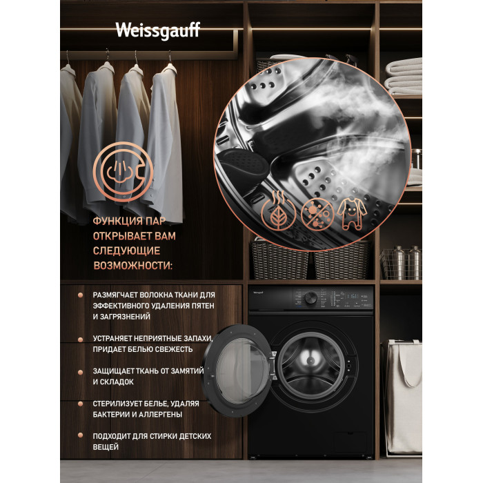 Стиральная машина Weissgauff WM 4527 DC Inverter Steam Black