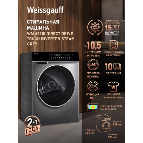Стиральная машина Weissgauff WM 62210 Direct Drive Touch Inverter Steam Grey