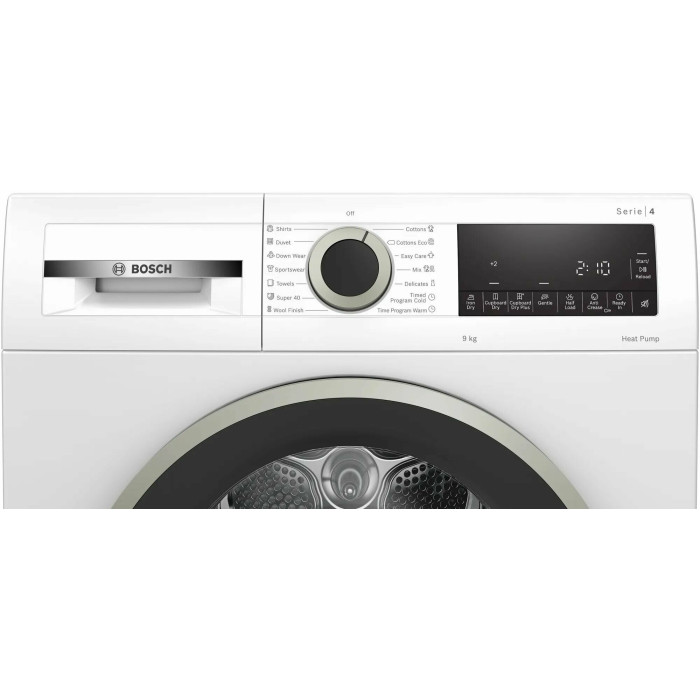 тип: сушильная машина, установка: отдельно стоящая, глубина: 613 мм, ширина: 598 мм, тип загрузки: фронтальная, тип сушки: конденсационная с тепловым насосом, режимы / функции: пуховые изделия, хлопок, максимальная загрузка: 9 кг, класс энергоэффективности: A++