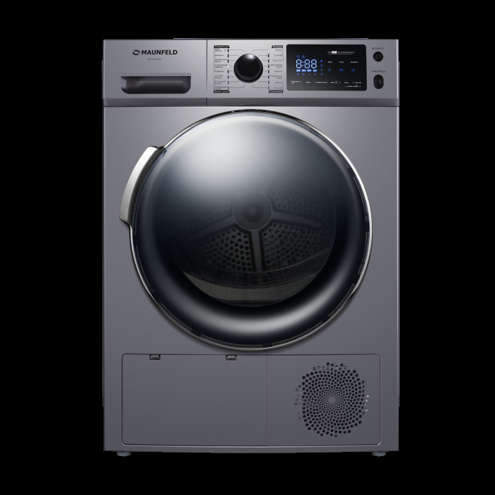 Отдельностоящая сушильная машина, оснащенная тепловой помпой и инверторным двигателем делает модель MFDM169S эффективной и выгодной! Установка в любом помещении - установите сушильную машину там, где это будет удобно вам. Замкнутый цикл с испарителем не требует обязательного проветривания помещения. А технология Heat Pump не нуждается в дополнительном вентиляционном канале. Ставьте технику там, где хотите! Новейшая технология Heat Pump для вашего сухого и мягкого белья - это новый взгляд на эффективность сушильных машин! Теплый и сухой воздух перегоняется в камеру сушильной машины, где забирает влагу из белья. Так ткань просушивается бережно и эффективно. Далее влажный воздух поступает в испаритель, где его температура понижается, а влага конденсируется и выводится. Съемный резервуар для слива конденсата – ещё одно преимущество, дарящее вам свободу выбора места расположения сушильной машины. Сушильная машина оснащена специальным резервуаром для конденсата от сушки одежды. Хотите, чтобы устройство работало там, где нет стационарного оборудования для слива? Без проблем! Функция «Отложенный старт» (до 24 часов) запустит программу тогда, когда вам нужно - хотите завершить сушку к определенному времени? Предпочитаете запускать машину на ночь, чтобы экономить электроэнергию? Установите «отложенный старт» и сушильная машина включится и произведёт сушку белья точно в срок. Экономия электроэнергии и идеально высушенное бельё – встроенный датчик автоматически определит влажность белья и отрегулирует время сушки. Большой информативный дисплей - отслеживайте параметры сушки с помощью яркого экрана. Корректируйте программу под ваши потребности: меняйте температуру (20-70 °C), сокращайте время сушки. Вы здесь босс. Сохраните часто используемые параметры в программе «Мой режим» - задайте температуру, скорость оборотов при отжиме и дополнительные функции. Теперь ваша уникальная программа будет доступна в верхнем положении регулятора, и вы сможете одним движением включить ее. Режим «Антисмятие» для тех, кто не хочет тратить время на глажку –предотвратит образование складок и заломов на одежде. Не проводите полжизни у гладильной доски, аккуратное бельё прямо из сушильной машины. Не переплачивайте за счета с классом энергоэффективности A++ - сушильная машина не выбрасывает ваши деньги на ветер, а эффективно избавляет от мокрых простыней и пододеяльников в доме. Не бойтесь включать устройство вместе с энергозатратной техникой и не волнуйтесь о счёте за электричество. Тихий инверторный двигатель - особая технология задействует электромагнитное поле для вращения барабана. Это снижает уровень шума до 66 дБ , уменьшает энергопотребление и износ. Сушильная машина стала тише и долговечнее. Вместительный барабан – загрузите до 9 кг белья за один раз! Интуитивное сенсорное управление – последние технические инновации позволят вам легко взаимодействовать с данной моделью. Внутренняя подсветка открывает возможность обзора всего внутреннего пространства камеры сушильной машины, что облегчает как загрузку и выгрузку вашей одежды, так и уход за техникой. Не будьте привязаны к розетке - кабель длиной 1,5 м даёт вам возможность выбрать место для техники на основе своих предпочтений, а не проводки. Блокировка от детей - это уверенность в том, что сушиль