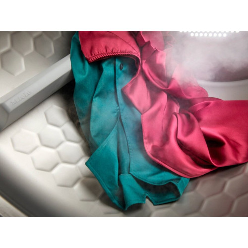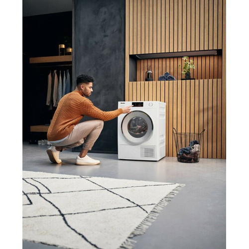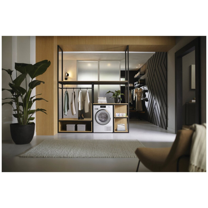 Сушильная машина Miele White Edition TWV780WP оснащена сенсорным дисплеем, с помощью которого пользователь сможет выбрать одну из 23 программ. Устройство с технологией PerfectDry измеряет остаточную влажность белья и определяет химический состав воды. После этого параметры работы модели автоматически корректируется для обеспечения наилучшего качества и эффективности сушки. Также это в сочетании с функцией EcoDry и тепловой помпой способствует сокращению продолжительности цикла и расхода электроэнергии для максимального комфорта эксплуатации. Модель имеет сотовый барабан с мягкими ребрами внутри, что обеспечивает равномерность высушивания и снижение механического воздействия на ткань. Эффективная система шумоподавления способствует созданию комфортных условий для применения устройства в жилых квартирах и домах в любое время суток. Сушильная машина Miele White Edition TWV780WP посредством паровой обработки заметно разглаживает складки на вещах, что существенно облегчает процесс глаженья. С помощью функции FragranceDos и ароматизатора пользователь может придать белью стойкий запах свежести, который сохраняется на протяжении месяца. Благодаря встроенной системе отвода конденсата можно слить жидкость, собранную в процессе сушки, непосредственно в раковину или сифон без необходимости извлечения специального резервуара, что упрощает уход за моделью. Короткие циклы программ, низкое энергопотреблениеТехнология EcoDry фирмы Miele обеспечивает неизменно малое энергопотребление и короткую продолжительность сушки. Эффективное взаимодействие системы фильтрации Miele и не требующего обслуживания теплообменника защищает последний от загрязнения ворсом и, таким образом, предотвращает постоянное снижение производительности. Сушильные машины Miele с тепловой помпой и технологией EcoDry работают экономно на протяжении всего срока службы. Свежий аромат после сушкиФлаконы Miele с ароматизаторами придадут высушенному белью любимый запах. Эти ароматы производит семейное предприятие на юге Франции, занимающееся их разработкой с 1871 года. Благодаря использованию запатентованного процесса в ароматизаторах обеспечивается сохранность эфирных масел. Результат – невероятно свежее бельё с натуральным ароматом, сохраняющимся до 4 недель. В зависимости от модели прибора можно использовать один или два аромата. Альтернатива глажке – быстро и свежоПрограмма SteamFinish от Miele упрощает уход за бельём. В начале сушки программа SteamFinish деликатно распыляет воду внутри сотового барабана, где она нагревается под воздействием сухого воздуха. Образующийся пар заметно разглаживает бельё. Новая опция PowerFresh освежает ткани с помощью пара, без предварительной стирки. Для получения оптимальных результатов добавьте флакон с ароматизатором DryFresh®, что поможет нейтрализовать запахи. Новые опции сушки С новой опцией DryCare 40 уход за бельём стал намного проще. После.