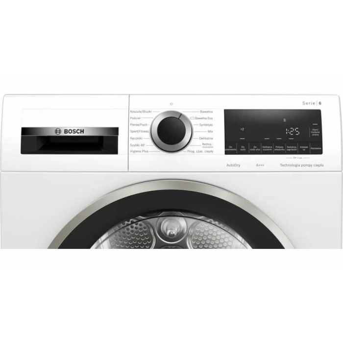 Сушильная машина Bosch WQG233DKPL оснащена инверторным двигателем он сохраняет тишину при работе и экономит электроэнергию. Вы можете заблокировать панель управления от детей. Вы можете выставить время на включения от 1 до 24 часов.