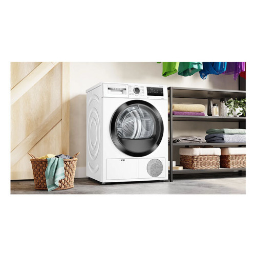 Сушильная машина Bosch Serie 4 WTH85V3FPL - это отдельностоящая конденсационная сушка с тепловым насосом, обеспечивающая высокую эффективность и надежность. Максимальная загрузка составляет 8 кг, что делает ее идеальным выбором для больших семей.