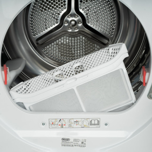 Сушильная машина отдельностоящая. Тип загрузки: фронтальная. Тепловой насос. Глубина 52,7 см. Максимальная загрузка белья: 7 кг. Объем барабана : 90 л. 15 программ. Электронное управление. LED дисплей. Корпус BOOMERANG, Барабан "La perla". Класс энергоэффективности: B. 3 уровня сушки (Extra/ Normale/ ко времени (In tempo). Индикатор заполнения фильтра. Индикатор заполнения бака. Индикатор очистки конденсатора. Подсветка барабана. Автоматическая функция защиты от сминания. Функция против сминания PLUS. Функция Деликатная. Отложенный запуск. Система обнаружения неисправностей (Auto-Controlle Sistema). Выбор скорости отжима. Выбор температуры. Защита от детей (Bambino Controle). Диаметр двери Ø 51 см. Габариты (ВхШхГ), см: 845x596x527