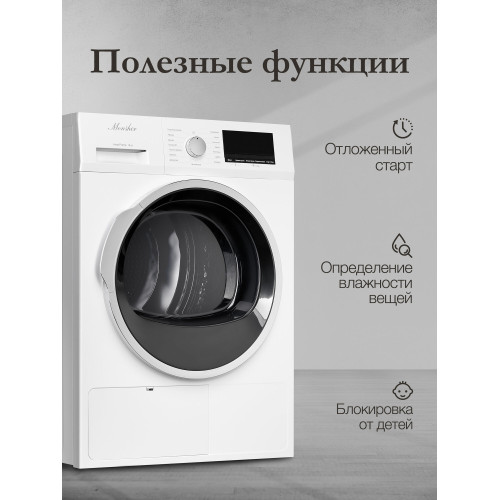 Сушка по времени, Диаметр люка 500 мм, Диаметр загрузочного люка 385 мм, Барабан нержавеющая сталь 111 л, Уровень сушки