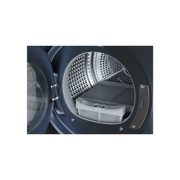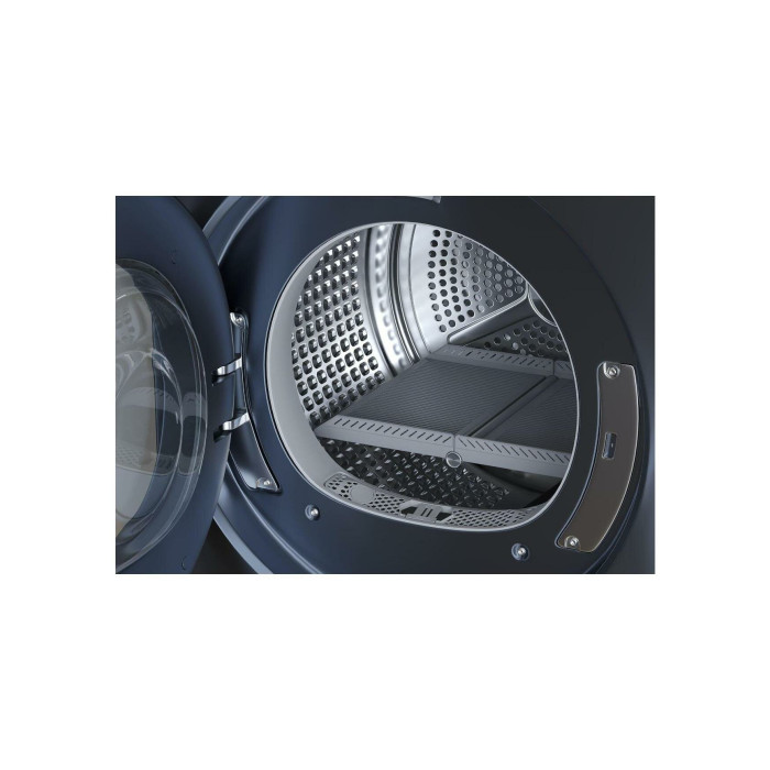 Кнопочное управление; Сенсорное управление; Режимов сушки (синтетика) - 4 шт.; Режимов сушки (хлопок) - 4 шт.; Режимов сушки (шерсть) - 4 шт.; Отключение звукового сигнала; Звуковой сигнал; Индикация этапов программы; Индикация загрязнения фильтра; Индикация заполнения резервуара; Индикация времени до конца программы; Оптимизация времени и электроэнергии; Внутреннее освещение; Тепловой насос; Инверторный мотор; Встроенный теплообменник; Воздухоотвод; Отвод конденсата в дренаж; Установка на стиральную машину; Автовыключение; Поверхность барабана - Pillow Drum; Диаметр загрузочного люка - 52.5 см