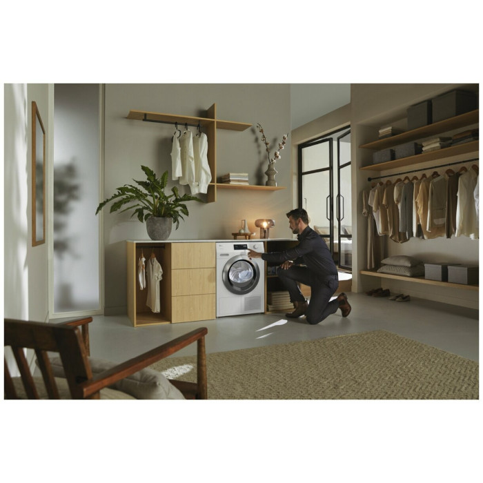 Сенсорное управление; Отключение звукового сигнала; Звуковой сигнал; Индикация этапов программы; Индикация загрязнения фильтра; Индикация заполнения резервуара; Индикация времени до конца программы; Самоочистка теплообменника; Оптимизация времени и электроэнергии; Внутреннее освещение; Съемная верхняя крышка; Тепловой насос; Инверторный мотор; Встроенный теплообменник; Отвод конденсата в дренаж; Установка на стиральную машину