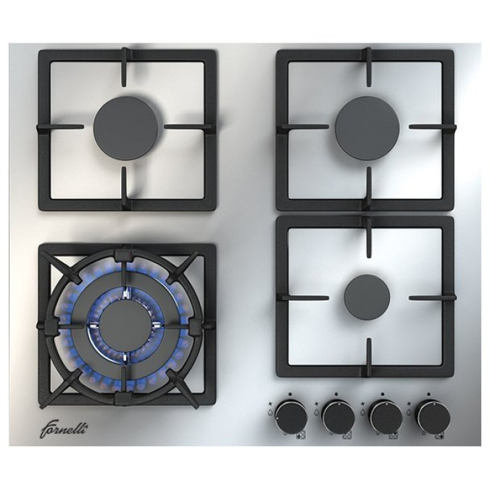 фронтальное управление; 4 чугунные решетки, индивидуальные для каждой конфорки; комплектация: жиклеры для сжиженного газа, адаптер для WOK-посуды