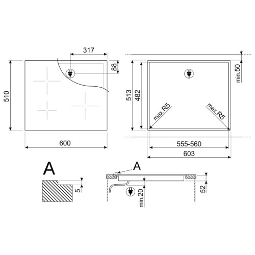 Встраиваемые электрические панели SMEG Встраиваемые электрические панели SMEG/ Индукционная, Индукционная варочная панель, 60 см, 4 конфорки, прямой край, черная