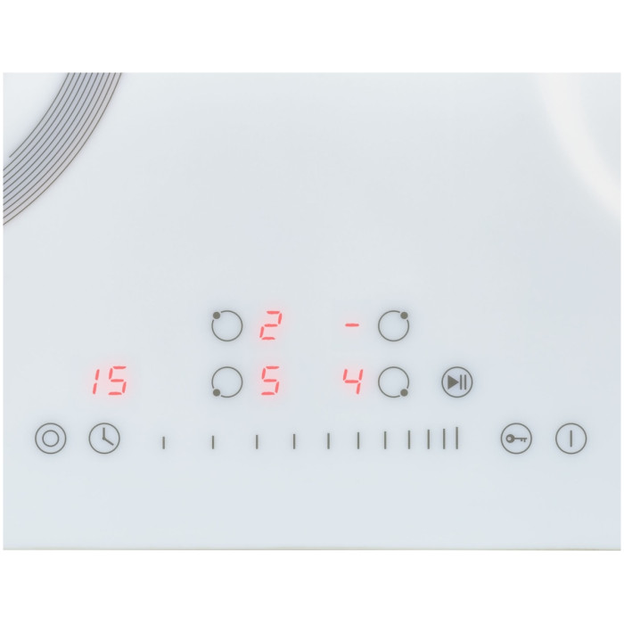 защитное отключение конфорок, кнопка блокировки панели, индикатор остаточного тепла