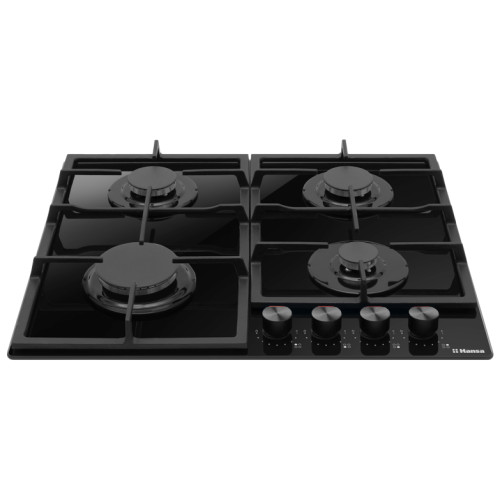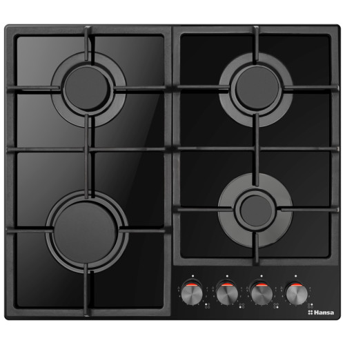 Встраиваемая варочная панель HANSA/ Варочная поверхность, газовая BHKS630540, 4 газовых конфороки (1х5,3см, 2х7,3cм, 1х9,8см), ЧУГУННЫЕ РЕШЕТКИ, автоподжиг, газ-контроль, черный