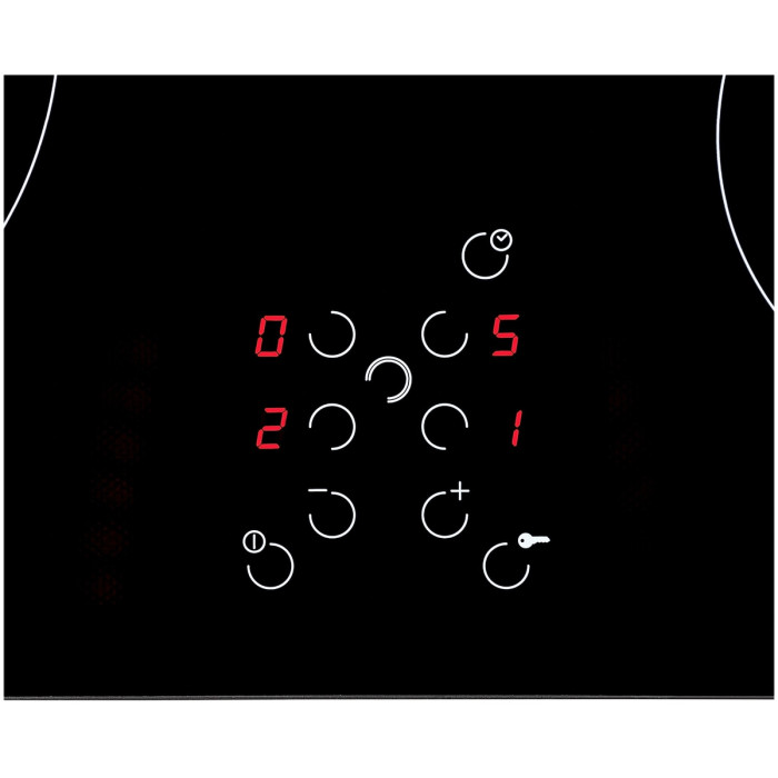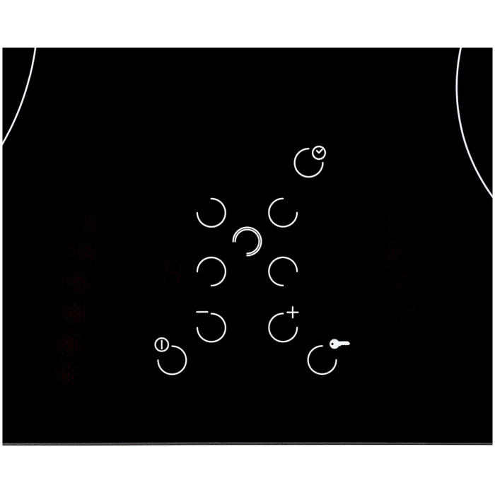 защитное отключение конфорок, кнопка блокировки панели, индикатор остаточного тепла