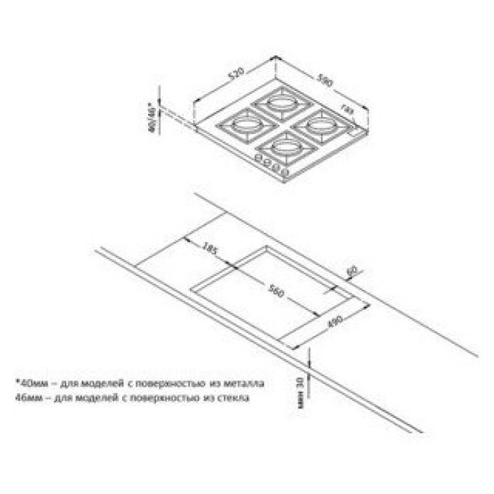 тип панели: газовая, количество конфорок: 4, материал панели: закаленное стекло, установка: независимая, переключатели: поворотные, ширина: 59 см, глубина: 52 см, газ-контроль конфорок