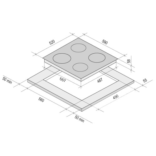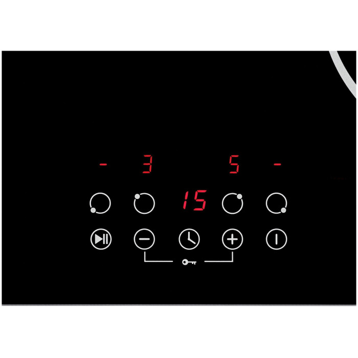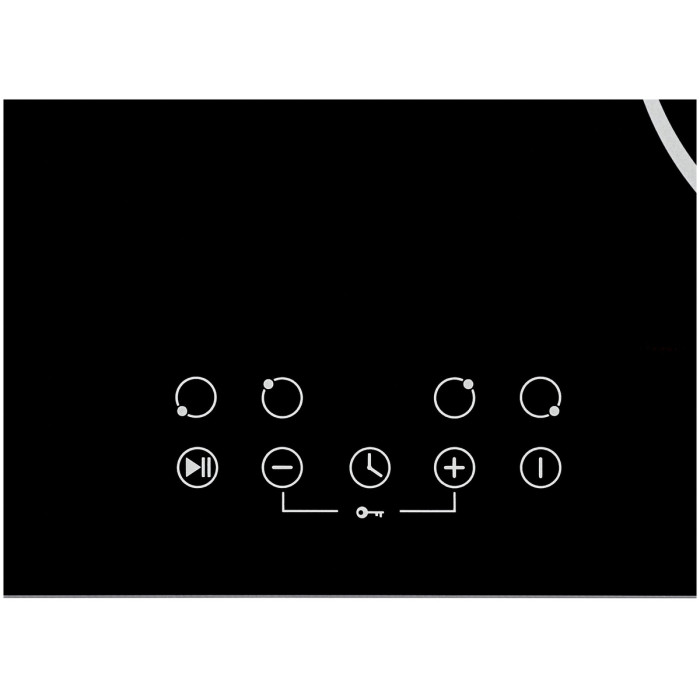 защитное отключение конфорок, кнопка блокировки панели, индикатор остаточного тепла