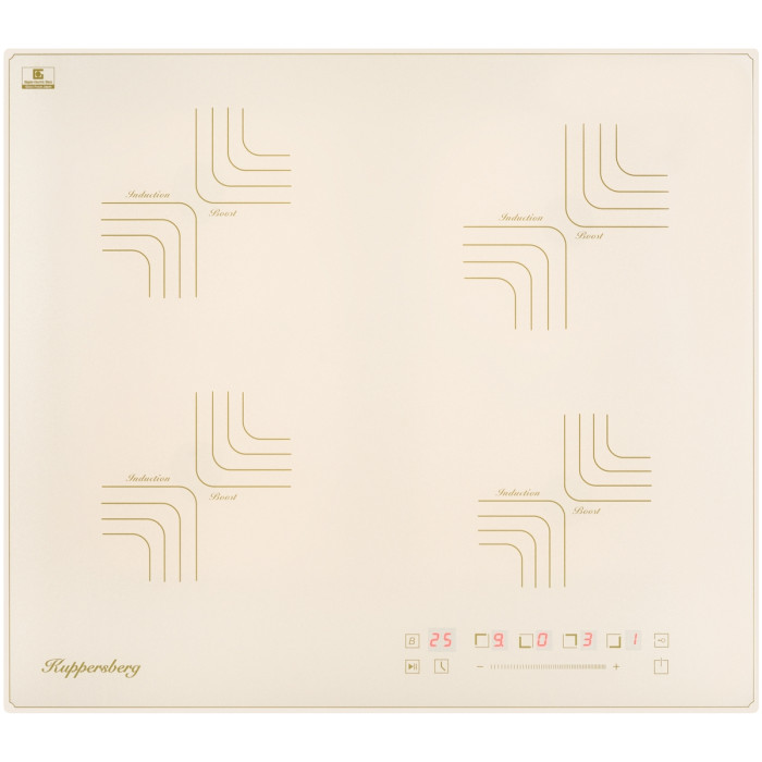 мощность конфорок: передняя левая 2,0 кВт / BOOSTER 2,6 кВт, передняя правая 1.5 кВт / BOOSTER 2,0 кВт, задняя левая 1.5 кВт / BOOSTER 2,0 кВт, задняя правая 2.0 кВт / BOOSTER 3,0 кВт; 5 цифровых дисплеев; 9 уровней мощности