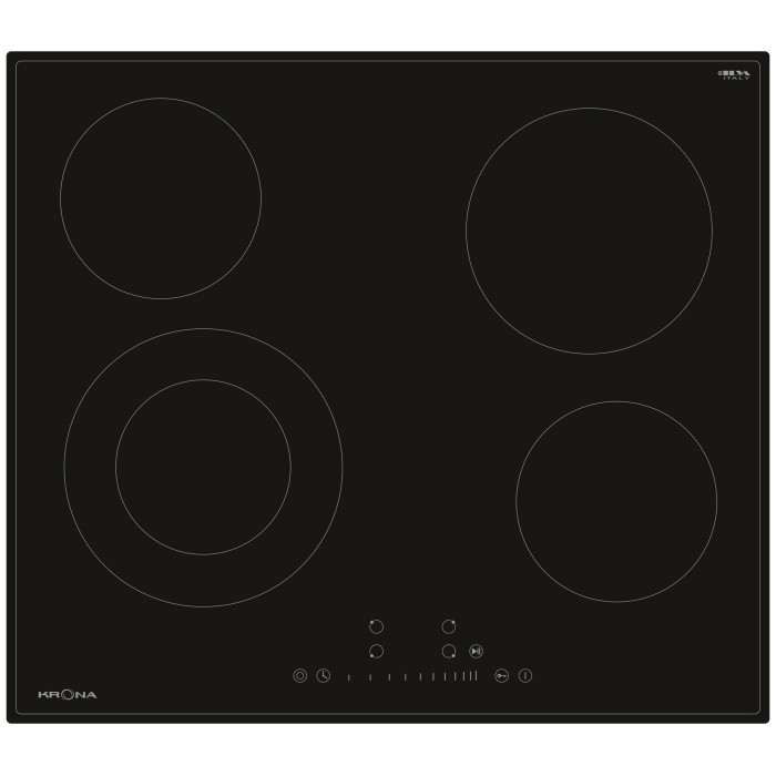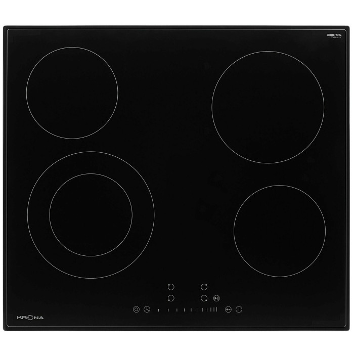 тип панели: электрическая, количество конфорок: 4, материал панели: стеклокерамика, установка: независимая, переключатели: сенсорные, ширина: 59 см, глубина: 52 см, безопасность: защитное отключение конфорок, кнопка блокировки панели, индикатор остаточного тепла, функции: таймер, максимальная потребляемая мощность: 6.40 кВт