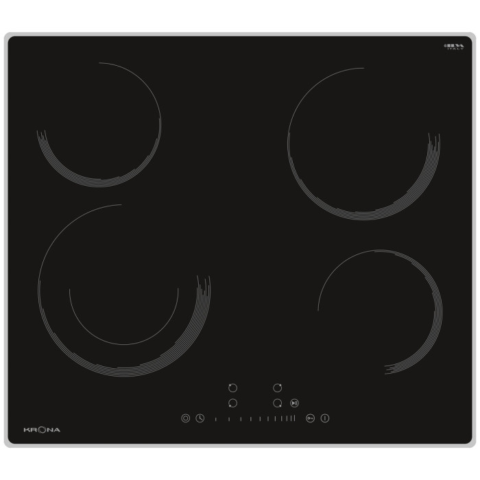 защитное отключение конфорок, кнопка блокировки панели, индикатор остаточного тепла