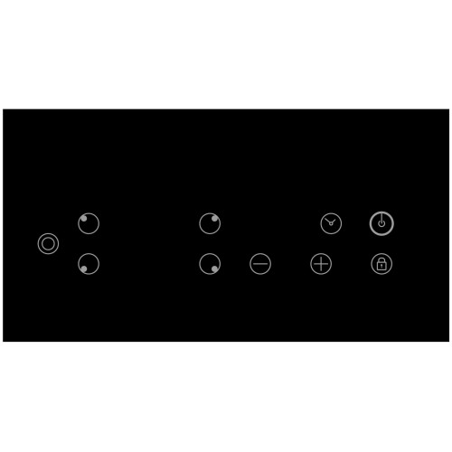 одноконтурная конфорка 2 х 1200 Вт (Ø 165 мм); двухконтурная конфорка 1 х 1000 Вт/ 2000 Вт. (Ø 140 мм./ Ø 200 мм); трехконтурная конфорка 1 х 700 Вт/ 1500 Вт/ 2200 Вт (Ø 120 мм./ Ø 175 мм./ Ø 230 мм)