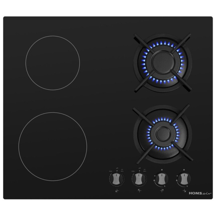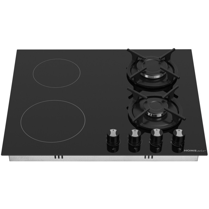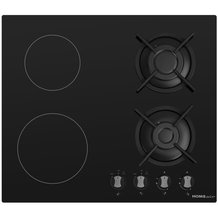 Комбинированная варочная поверхность, оснащенная 2 турецкими газовыми конфорками ALBEK (с матовыми крышками) и 2 электрическими конфорками, автоматической системой поджига, газ-контролем и чугунными решётки (круглые), подходит для сжиженного/ натурального газа (набор форсунок прилагается). Модель имеет 9 уровней мощности, позволяющие подобрать подходящую температуру для приготовления блюд. Рабочая поверхность выполнена из закаленного стекла. Модель оснащена функцией защиты от детей и защитой от перегрева. Мощность конфорок: электрические: 1,2кВт и 1,8 кВт; Газовые: 1 кВт и 2,6 кВт. Размеры встраивания 560х485.