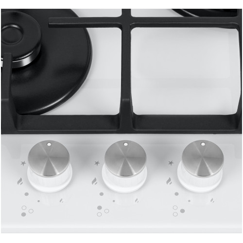 Тип: газовая; Установка: независимая; Всего конфорок: 3; Материал панели: закаленное стекло; Цвет: белый; Расположение панели управления: спереди; Переключатели: поворотные; Газ-контроль конфорок: есть; Электроподжиг: есть; Тип электроподжига: автоматический; Описание: Возможность работы от магистрального газа и газа в баллоне.; Ширина: 44; Ширина встраивания: 410 мм.; Глубина: 51; Глубина встраивания: 480 мм.; Высота: 5,1