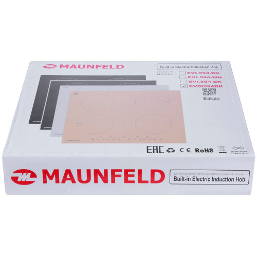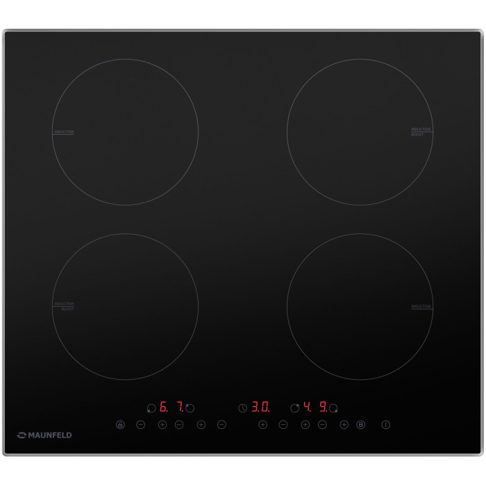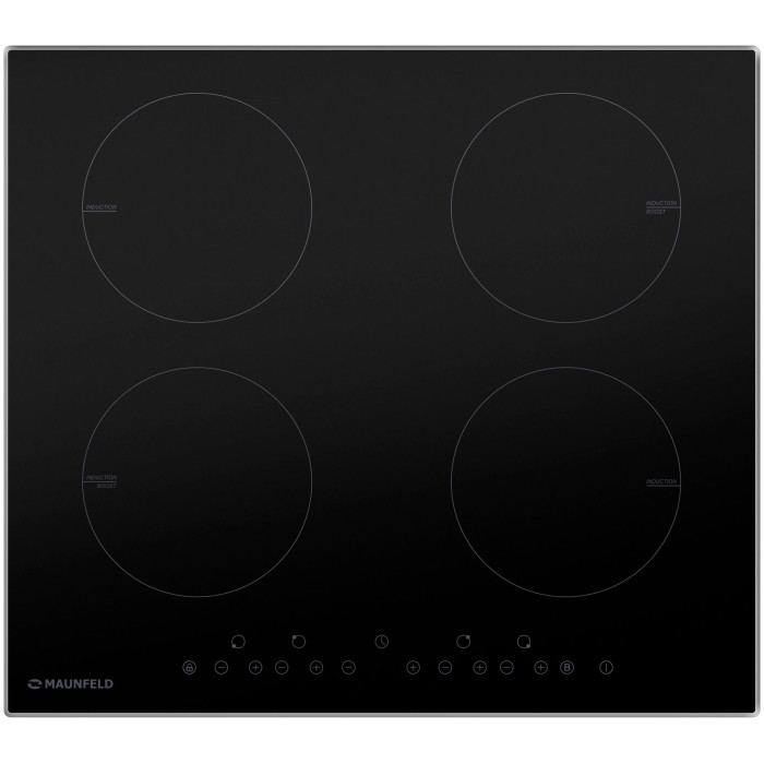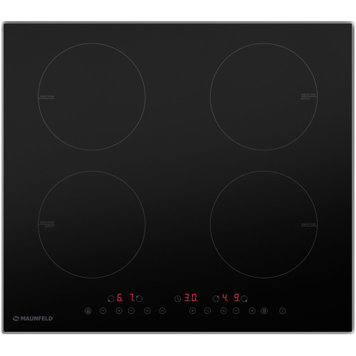 Электрическая индукционная панель MAUNFELD EVI.594-BK/ Индукционная, • Тип: электрическая 60 см • Тип установки: независимая • Управление: фронтальное, сенсорное • Нагревательный элемент: индукция, 4шт • Мощность конфорок, Вт: 2 0 0 0 /2 6 0 0 (бустер), 2 0 0 0 /2 6 0 0 (бустер), 1500, 1500 • Макс, потреб, мощность, Вт: 7000 • Материал исполнения: стеклокерамика • Особенности: индикация ступени нагрева (от 0 до 9), таймер приготовления, таймер минутный, детектор диаметра посуды, индикатор остат