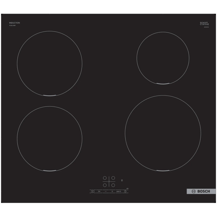 Bosch Serie 4 PUE611BB5E представлена сразу 4 конфорками на панели из стеклокерамики. Если вы случайно забыли установить на посуду, то прибор просто не включится. Управление варочной поверхностью базируется на технологии TouchSelect. Выбирать зону нагрева и его интенсивность очень легко! Чтобы ускорить приготовление пищи, воспользуйтесь опцией PowerBoost.